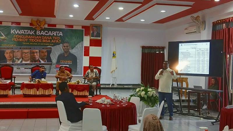 TIDORE, CH –  pengamat ekonomi dan politik  Ishak Naser yang hadir sebagai narasumber dalam forum Kwatak Bacarita menegaskan bahwa persoalan terkait dugaan pengurangan Dana Transfer ke Daerah (TKD) tidak dapat dilihat secara sepihak. Selasa. (7/10/2025).