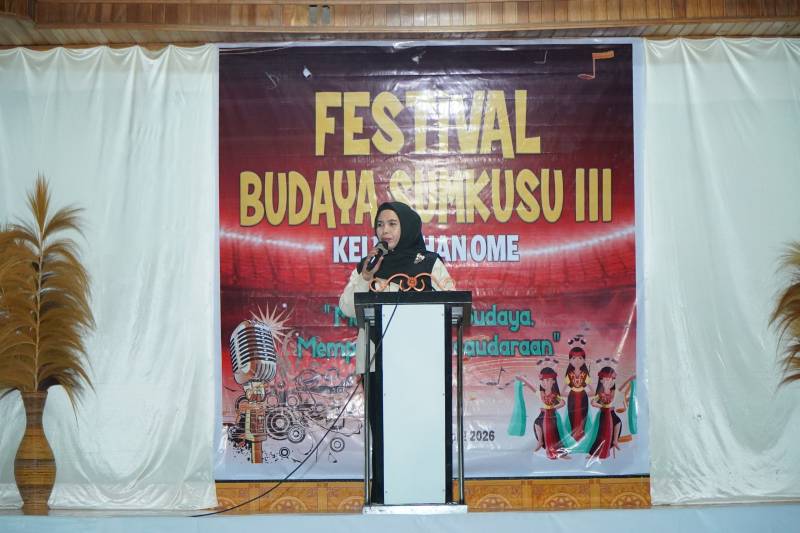 Dalam sambutannya, Ketua TP PKK mengapresiasi Panitia dan Masyarakat Kelurahan Ome yang telah bekerja keras sehingga Festival Budaya Sumsuku III Tahun 2026 dapat terlaksana, ia juga berharap semoga kerja keras ini memberikan manfaat besar bagi pelestarian budaya.