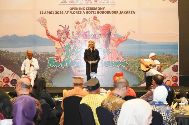 TIDORE,CH – Alunan magis rebab yang berpadu dengan petikan gitar sukses menghidupkan suasana Opening Ceremony eksibisi Discovery The Natural Treasure Tidore & Ternate di Hotel Borobudur Jakarta, Kamis (22/4/2026). Penampilan tersebut menjadi bukti kebangkitan kreativitas anak muda Tidore di panggung nasional.